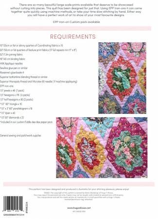 From Hugs 'n Kisses In Quilts A great way to showcase large scale prints you just can’t bear to cut apart. Measures 47.5"" x 70"". This quilt was designed to show off the Tilda Chic Escape large scale prints and motifs but the layout and design would work with any stunning large style prints such as Tula Pink, Anna Maria Horner, Kaffe and Kathy Doherty style prints. You could also EPP fussy cut the centre motifs and make it truly individual and stunning. Using our unique iron on leave in EPP papers, it can be constructed by hand or machine - see our Youtube tutorial on our machine method. All die cut and laser cut EPP iron-on papers included for full quilt.