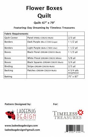From Ladeebug Designs In Quilts Features Timeless Treasures' Day Dreaming Collection. Starting with a panel, a series of borders create the effect of boxes. The two tones of purple add dimension and add to the box illusion.