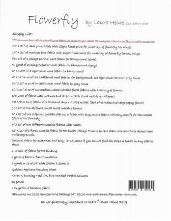 From Fiberworks Inc By Heine, Laura In Quilts Flowerfly...Butterfly Collage Pattern by Laura Heine. Pattern includes color step by step instructions and full size pattern, size 33in x 35in.