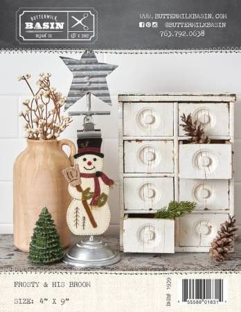 Frosty looks great hanging from a stand, or use some twine to hang from a tree as an ornament! Wool applique ornament is 4 X 9 Inches