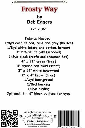From Cottage Rose By Eggers, Deb In Placemats, Table Runners & Toppers A wonderful table topper for the winter season. 17" x 36" This is 1 of a series for 3 seasonal runners with the same house theme. Printed Paper Pattern Finished Size: 17in x 36in Final Product: Placemat / Table Runner / Table Topper Technique Used: Applique / Standard Machine Sewing Skill Level: Confident Beginner