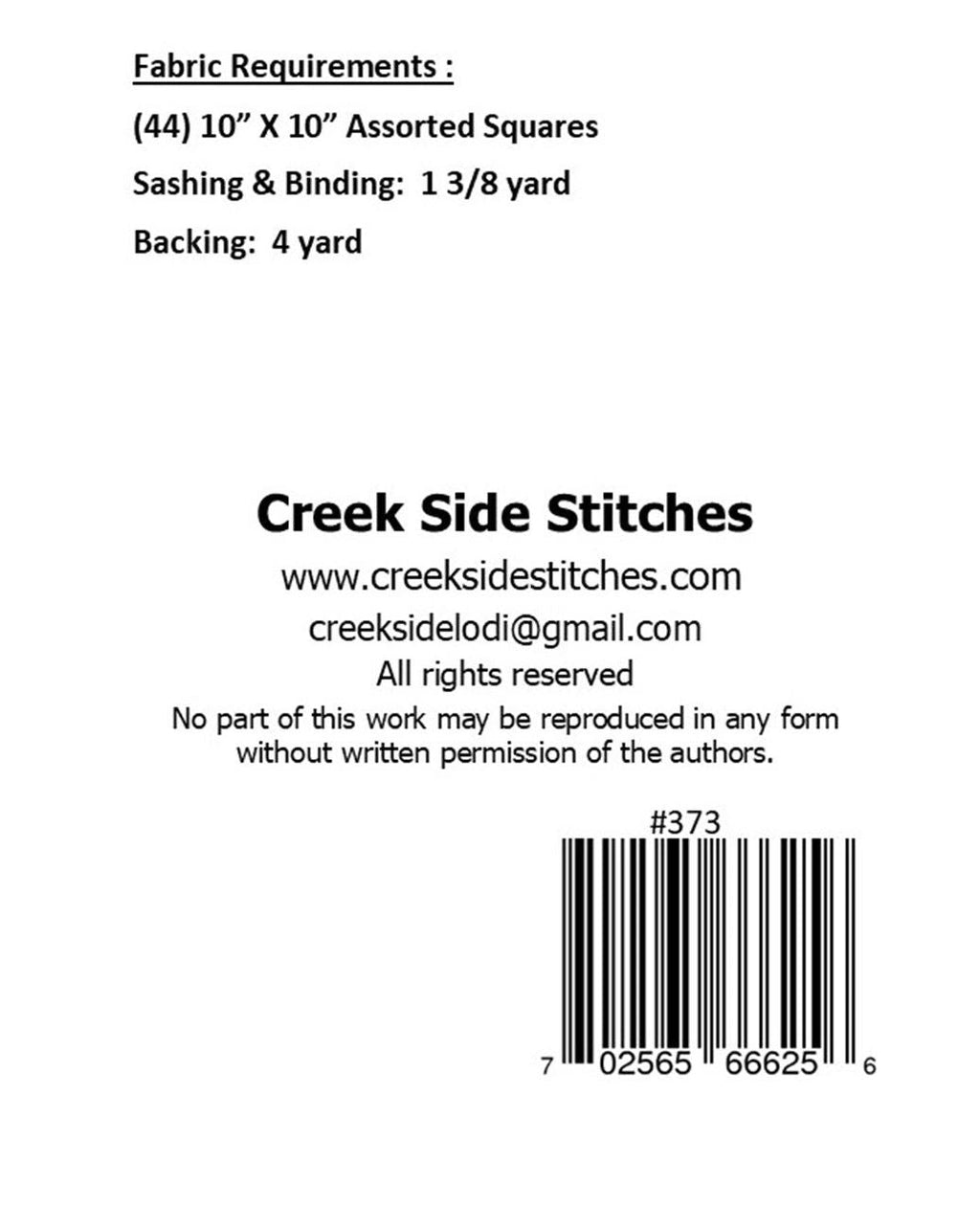 From Creek Side Stitches By Hellenbrand, Patrica T In Quilts 59in x 69in Quilt Creatively Cutting Assorted 10in Squares Printed Paper Pattern Finished Size: 59in x 69in Final Product: Quilt Technique Used: Standard Machine Sewing Skill Level: Confident Beginner