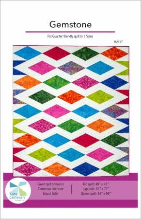 From Kate Colleran Designs By Formerly Seams Like A Dream and Colleran, Kate In Quilts A fat quarter friendly quilt - bright, bold design but with easy piecing. Instructions included for quilts in three sizes: Kid quilt: 48" x 48" Lap quilt: 64" x 72" Queen quilt: 96" x 96" Printed Paper Pattern Finished Size: Multiple Final Product: Quilt Technique Used: Standard Machine Sewing Skill Level: Confident Beginner