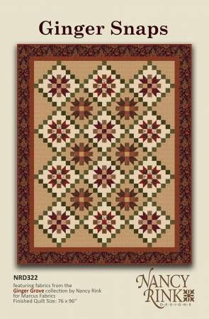 From Nancy Rink Designs By Rink, Nancy In Quilts Making these blocks is almost as delightful as snacking on ginger snaps. Blocks are made in three different color combinations and set with alternating stairstep blocks. Cleverly pieced blocks complete the on-point setting illusion. Believe it or not, this quilt has NO tricky cutting or sewing. Printed Paper Pattern Finished Size: 76in x 96in Final Product: Quilt Technique Used: Standard Machine Sewing Skill Level: Confident Beginn