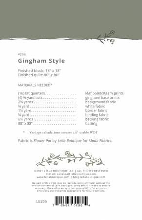 From Lella Boutique By Goertzen, Vanessa In Quilts Finished block: 18in x 18in. Finished quilt: 80in x 80in MATERIALS NEEDED - (16) fat quarters leaf point/steam prints - (4) 3/8-yard cuts gingham base prints - 2-5/8 yards background fabric - 5/8 yard white fabric - 1.25 yard border fabric - 3/4 yard binding fabric - 6.25 yards backing fabric - 88in x 88in batting Yardage calculations assume 42” usable WOF. Fabric is Flower Pot by Lella Boutique for Moda Fabrics. Printed Paper Pattern Final Product: Quilt Finished Size: 80in x 80in Technique: Standard Machine Sewing Skill Level: Confident Beginner