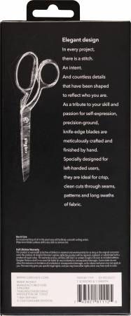 From Gingher Inc In Scissors Fiskars Brand / Gingher products can only be sold by authorized brick and mortar resellers and authorized internet resellers. Fiskars products cannot be sold on any third-party website. Specifically designed for left-handed users, Gingher True Left-hand Knife-edge Dressmaker Shears are meticulously crafted of premium, forged steel with long, precision-ground, knife-edge blades that easily cut multiple layers of fabric, all the way to the tip. Their longer cut length is ideal for cutting patterns, trimming seams or cutting long swaths of fabric, and a double-plated chrome-over-nickel blade finish is both striking and durable. A bent handle design helps hold fabric flat on your worksurface for smooth, comfortable, mistake-free cutting. These shears also include a protective nylon sheath for storage. Previously item 01-005309 Made of: Metal Use: Scissors Size: 8in Included: One Pair of Scissors