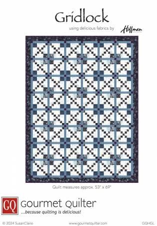 From Gourmet Quilter By Mayfield, Susan Claire In Quilts Gridlock, measuring 53" x 69", is a delightfully pieced quilt featuring Vino at Dusk batik s by Hoffman Fabrics. Great for a confident beginner. Printed Paper Pattern Finished Size: 53in x 69in Final Product: Quilt Technique Used: Standard Machine Sewing Skill Level: Confident Beginner