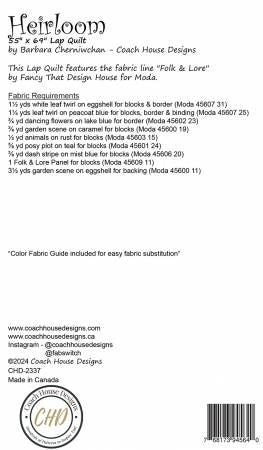 From Coach House Designs By Cherniwchan, Barbara In Quilts 55" x 69" all pieced lap quilt featuring the Folk & Lore panel by Fancy That Design House. The floral panel blocks are set among coordinating star blocks. Printed Paper Pattern Finished Size: 55in x 69in Final Product: Quilt Technique Used: Standard Machine Sewing Skill Level: Confident Beginner