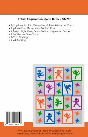 From On Williams Street In Quilts Hi-Yah! is an easy applique quilt pattern. This modern kid’s quilt pattern includes templates for four different ninjas. The ninjas also make great pillows, bags, and backpacks. Use them to personalize the décor for your little ninja’s room. Layouts for a baby quilt (about 44x52"), throw quilt (about 58x70") and a twin size bed quilt (about 72x96") are included.