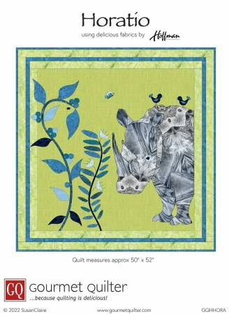 From Gourmet Quilter By Mayfield, Susan Claire In Quilts This quilt/wall hanging is all about Horatio the Rhino! A fused applique quilt, Horatio features a delicious Kaleidoscope Dream Big panel by Hoffman Fabrics. The quilt measures approx. 50" x 52". Great for a confident beginner. Printed Paper Pattern Finished Size: 50in x 52in Final Product: Quilt Paper Templates Included Technique Used: Applique / Standard Machine Sewing Skill Level: Confident Beginner
