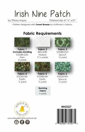 From Needle In A Hayes Stack By Hayes, Tiffany In Quilts "Enjoy the greenery and foliage along the path of the Irish Nine Patch quilt. Quilt design featuring Hoffman Bali Batiks, Sweet Breeze collection. Quilt finishes at 67"" x 81""."