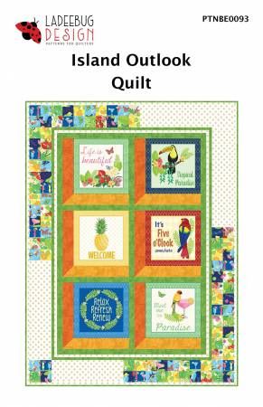 From Ladeebug Designs In Quilts Features Benartex's Island Time collection. Finished size: 38" x 51". Confident Beginner - precise cutting and multi-bock construction. This attic window quilt is quick and easy to put together. With a half-square-triangle patch in the corner of the window, there are no difficult miters or "y" seams. Start with the 6 window blocks and add the asymmetrical 4-patch border to finish off the design. This quilt can be made with any 24" panel and the 4-patch border is fat eighth friendly.