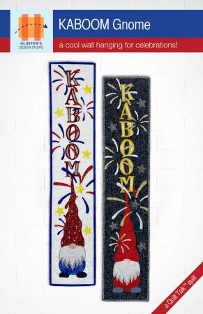 From Hunter's Design Studio By Hunter, Sam In Wall Hanging KABOOM Gnome is a fast and easy wall hanging for any type of celebration - from Indepence Day to New Years! The wall hanging is approximately 7’’ x 36’’ finished. The pattern is written for fusible appliqué but you can use any appliqué method of your choice. SVG Files included. Printed Paper Pattern Finished Size: 7in x 36in Final Product: Wall Hanging Technique Used: Applique / Fusible Applique Skill Level: Beginner