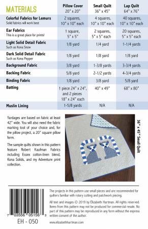 From Elizabeth Hartman By Hartman, Elizabeth In Quilts Piece these adorable lemurs and their stripey tails using pre-cut fabric squares. All piecing is done using conventional patchwork techniques. No templates or paper piecing! Pattern uses 5” and 10” pre-cut squares and includes instructions for making a 20” x 20” pillow cover, a 36” x 45” small quilt, and a 64” x 76” large quilt.