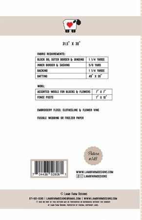 From Lamb Farm Designs By Lamb, Jennie Jo In Wall Hanging This is a great pattern to showcase those solid wools. Traditionally pieced background and wool applique quilts hanging on the line just says country farm! This 31.5" x 30" wall hanging compliments any decor. This project is suitable for a confident beginner. All our wool patterns include complete directions and images both reversed and not reversed to accommodate fusible and non-fusible applique techniques. Printed Paper Pattern Finished Size: 31-1/2in x 30in Final Product: Wall Hanging Paper Templates Included Technique Used: Applique Skill Level: Confident Beginner