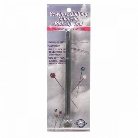 From Tooltron In Pincushions This pickup tool has an extension of 36 inches and can pick up 30 times its own weight. Made of: Metal Use: Magnetic pickup tool Size: 36in long, fully extended