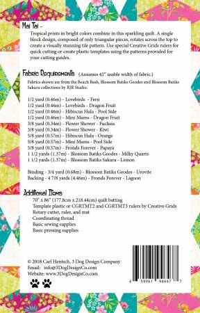 Tropical prints in bright colors combine in this sparkling quilt. A single block design, composed of only triangular pieces, rotates across the top to create a visually stunning tile pattern. Use special Creative Grids rulers for quick cutting or create plastic templates using the patterns provided for your cutting guides. Finished Quilt Measures: 64" x 80"