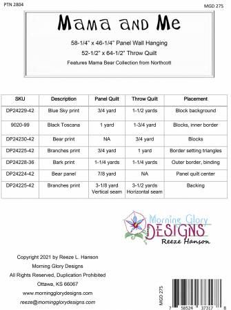 From Morningglory Designs By Hanson, Reeze L In Quilts Pattern includes complete instructions for a panel quilt (58in x 46in) and a matching lap quilt (52in x 64in) featuring Mama Bear Collection from Northcott. Both quilts feature paper pieced bear paw block triangle borders and simple piecing to showcase the adorable Bear panel land companion fabrics. Printed Paper Pattern Final Product: Wall Hanging Finished Size: 58.25in x 46.25in Technique: Foundation Paper Piecing, Standard Machine Sewing Skill Level: Intermediate
