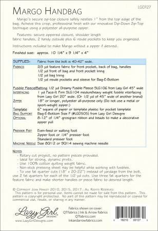 From Lazy Girl Designs - Joan Hawley By Hawley, Joan In Bags, Purses, Totes & Electronic Covers Margo's secure zip-top closure safely nestles 1 in from the top edge of the bag. Achieve this crisp, professional finish with innovative Dip-Down Zip-Top technique using any poly- ester all-purpose zipper. Features: shoulder length fabric handles & 2 outside plus 6 inside pockets.Order #F7218+color