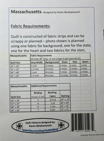 From Karen Abrahamovich By Abrahamovich, Karen In Quilts Massachusetts - A quilt Pattern in 4 Sizes! Constructed using strips varying in size from 1" to 2.5" depending on what size you want your finished quilt. Quilt size options are 16" x 16", 32" x 32", 48" x 48", 64" x 64" to make a variety of wall quilts or go big and make a throw size quilt!