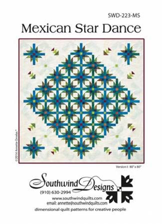 From Southwind Designs By Ornelas, Annette In Quilts Mexican Star Dance is a dimensional curved piecing pattern in two settings and sizes. 80in x 80in and 65in x 80in. It is a larger expanded version of the popular Mexican Stars pattern.