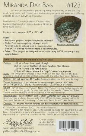 From Lazy Girl Designs - Joan Hawley By Hawley, Joan In Bags, Purses, Totes & Electronic Covers Uses # LGD503 Bag-E-Bottoms Size D. Perfect bag for your day on the go. Moderate sized, roomy tote with pockets to keep everything organized. Main compartment ideal for magazines and file folders. Fusible interfacing gives body and posture Great for fat quarters and large scale prints.