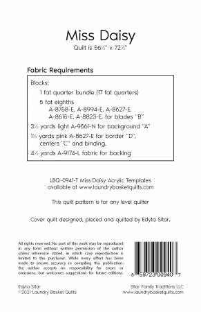 From Laundry Basket Quilts By Sitar, Edyta In Quilts Laundry Basket Quilts Original Pieced Quilt Pattern. Finished quilt size is 56.5in x 72.5in. Printed Paper Pattern Final Product: Quilt Finished Size: 56.5in x 72.5in Technique: Standard Machine Sewing Templates included: Yes - Paper Templates Skill Level: Any Level