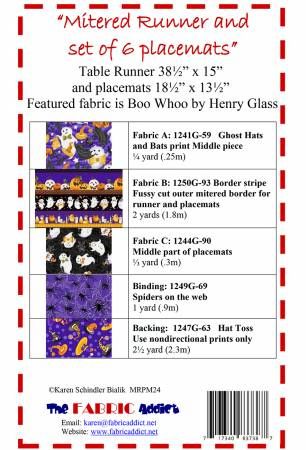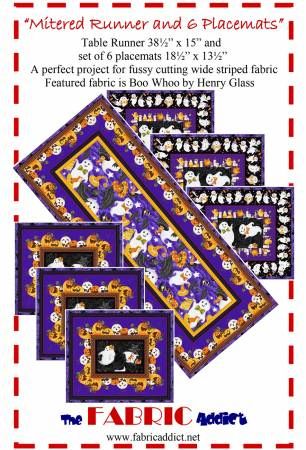 From Fabric Addict By Schindler, Karen In Placemats, Table Runners & Toppers Mitered Runner and placemats - quilted pattern. Runner and 6 placemats uses 2 yards of length of fabric stripe for mitered borders. Printed Paper Pattern Finished Size: 37in x 15in & 19in x 14in Final Product: Table Runner / Table Topper / Placemats Technique Used: Standard Machine Sewing Skill Level: Confident Beginner