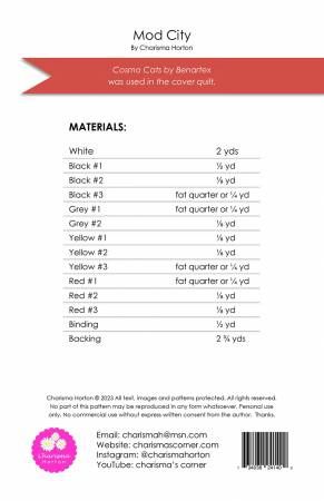 Mod city is a mid century modern design that is block based and easy to piece. Printed Paper Pattern Finished Size: 42in x 52in Final Product: Quilt Paper Templates Included Technique Used: Standard Machine Sewing Skill Level: Confident Beginner