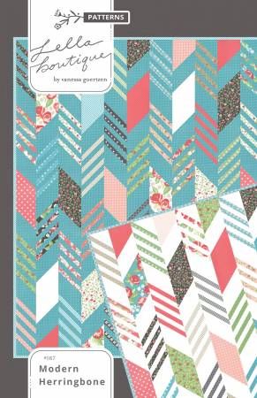 From Lella Boutique By Goertzen, Vanessa In Quilts Finished block: 5¼'' x 15¼'' Finished quilt: 63½'' x 76¾'' MATERIALS NEEDED 1 Honeybun® (36 strips 1½’’ x WOF) 9 assorted fat quarters 3¿ yards background fabric ¿ yard binding fabric 5 yards backing fabric 72” x 88” batting TOOLS NEEDED Modern Herringbone A & B Templates (included) Template plastic or cardboard Fabric is Bloomington by Lella Boutique for Moda Fabrics.