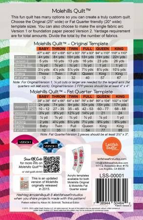From Latifah Saafir Studios LLC In Quilts The Molehills Quilt pattern will take you on a fun exploration in curved piecing. You can find your own voice in this pattern since it includes multiple variations including full fan, pieced fans and pieced arcs. CD included with templates, coloring pages, row labels, bonus full fan templates and the Blueberry Park piecing variation.