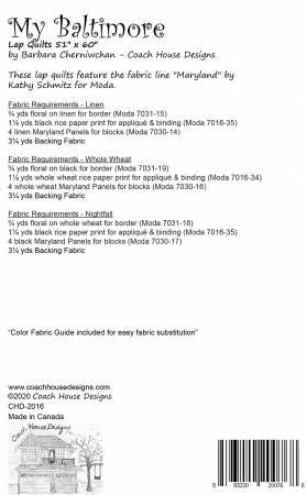 From Coach House Designs By Cherniwchan, Barbara In Quilts 51" x 60" lap quilt with applique on borders featuring Maryland panels by Kathy Schmitz