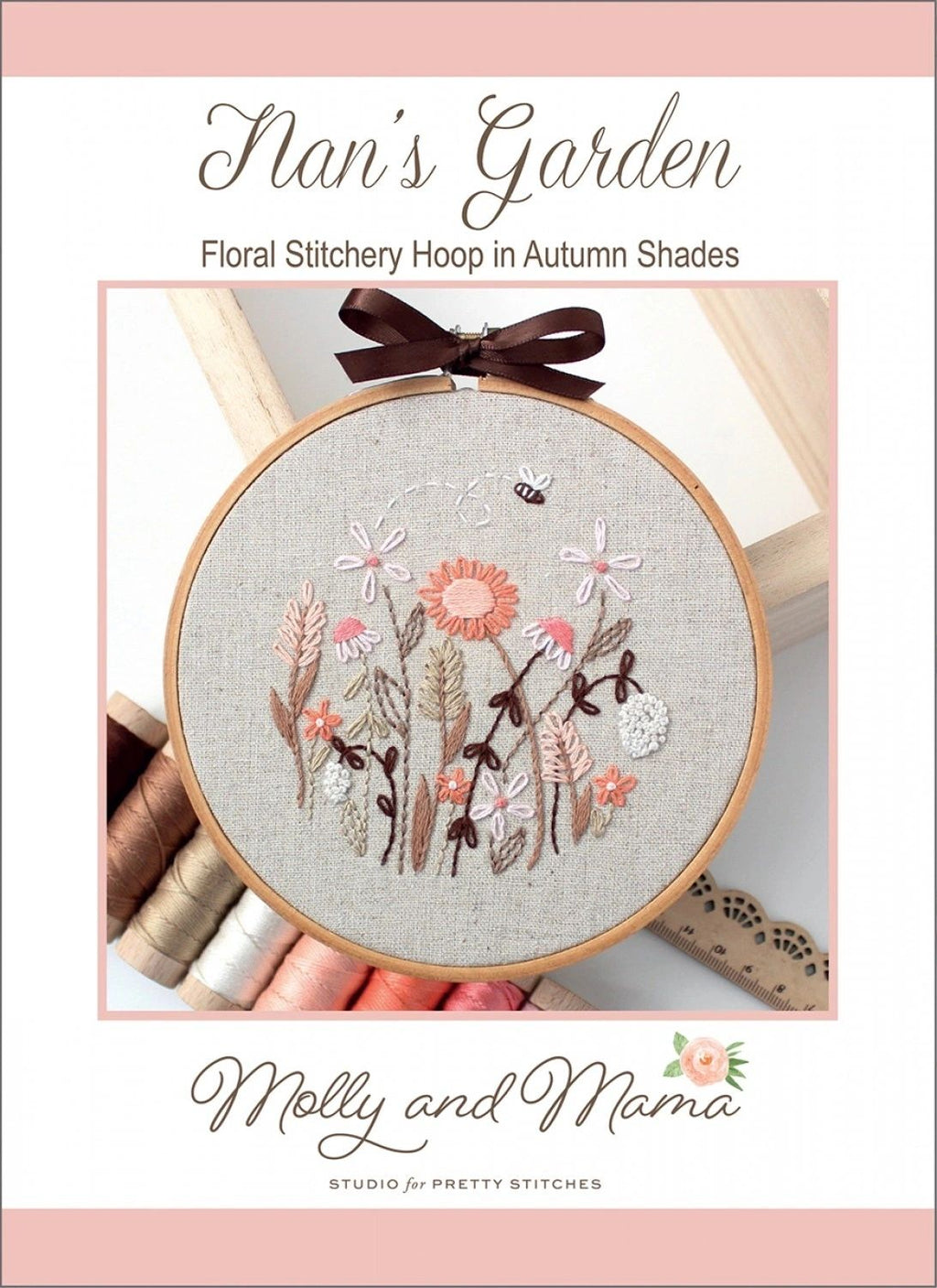 From Creative Abundance By Wright, Lauren In Wall Hanging Inspired by Grandmother’s glorious garden, this delightful hand embroidery project features a range of pretty flowers, stems and even a buzzing bee. The design appears intricate, however it utilises a simple combination of beginner friendly stitches, making this project achievable for all skill levels. Designed to sit beautifully inside a five inch timber hoop, the embroidery can then be proudly displayed on the wall. Visit the Molly and Mama blog for the beginner’s guide to embroidery and an explanation of all the included stitch types – www.MollyandMama.com.au The pattern comes with the preprinted linen in Natural as pictured, making this project perfect for embroidery workshops. EXPERIENCE LEVEL: Beginners FINISHED SIZE: Designed for a 5” (12.7cm) timber embroidery hoop. The floral motif measures approximately 3 ½” (9cm) across. Designed by Lauren Wright of Molly and Mama Printed Paper Pattern Finished Size: 5in diameter Final Product: Wall Hanging Paper Templates Included Technique Used: Hand Embroidery / Stitchery