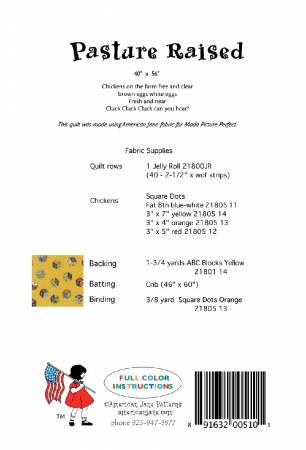 40" x 56" Jelly Roll Quilt, Chickens on the farm free and clear, brown eggs and white eggs, fresh and near, Cluck Cluck Cluck can you hear? Printed Paper Pattern Finished Size: 40in x 56in Final Product: Quilt Technique Used: Standard Machine Sewing Skill Level: Confident Beginner