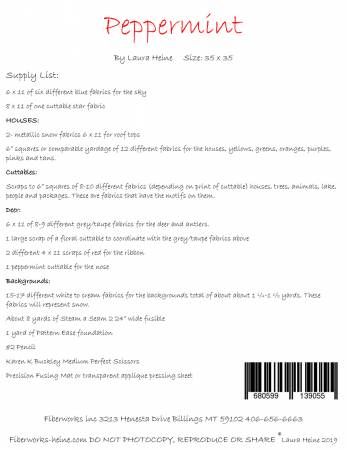 From Fiberworks Inc By Heine, Laura In Quilts Peppermint Collage Pattern by Laura Heine of Fiberworks. Pattern features complete step by step color instructions and full size pattern. Size 35in x 35in