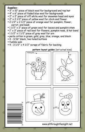 Tiny penny wool applique for the seasons Printed Paper Pattern Finished Size: 2-1/2in x 3-1/2in Final Product: Craft Technique Used: Applique Skill Level: Beginner