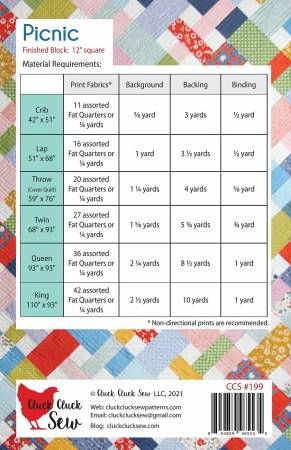 From Cluck Cluck Sew By Harris, Allison In Quilts A simple, on point Fat Quarter pattern in Crib, Lap, Throw, Twin, Queen, and King size. The blocks are traditionally pieced, and have a woven effect when sewn together. Printed Paper Pattern Final Product: Quilt Finished Size: Crib, Lap, Throw, Twin, Queen, and King Technique: Standard Machine Sewing Skill Level: Confident Beginner