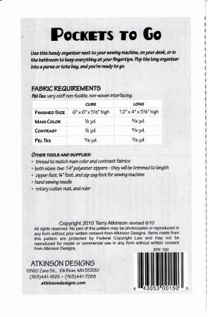 From Atkinson Designs By Atkinson, Terry In Bags, Purses, Totes & Electronic Covers Use these handy organizers next to your sewing machine, on your desk, or in the bathroom to keep everything at your fingertips. Pop the long size into a purse or tote and you're ready to go! 6" x 6" x 5-1/2" high and 4" x 12" x 5-1/2 high