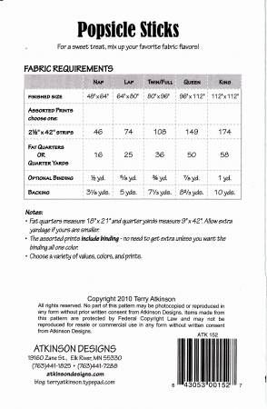 For a sweet treat, mix up your favorite fabric flavors. Use fat quarters or 2-1/2" strips. Nap, Lap, Twin/Full, Queen, King