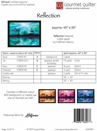 From Gourmet Quilter By Mayfield, Susan Claire In Quilts Quilt measures approx. 45in x 35in Reflection features a panel, Bolt, by Hoffman Fabrics. The panel is used as a background for applique. There are several colours of the Bolt panel Printed Paper Pattern Final Product: Wall Hanging Finished Size: 45in x 35in Technique: Applique, Standard Machine Sewing Skill Level: Confident Beginner