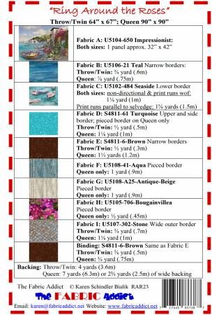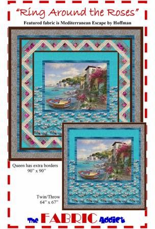 From Fabric Addict By Schindler, Karen In Quilts Ring Around the Roses quilt pattern. Throw and Queen sizes. Features Mediterranean Escape by Hoffman. Uses a horizontal panel approx. 32" x 42". Printed Paper Pattern Finished Size: 64in x 67in Final Product: Quilt Paper Templates Included Technique Used: Standard Machine Sewing Skill Level: Intermediate