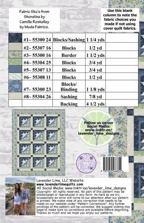 From Lavender Lime Quilting In Quilting - General A few quick fabric choices will make this fast quilt. We used Shoreline by Camille Roskelley by Moda Fabrics. But you pick your fabrics and we are sure your quilt will look amazing. Quilt finishes at 54 1/2" x 68 1/2". Softcover