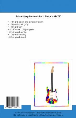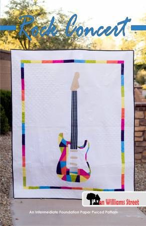 From On Williams Street In Quilts Rock Concert is a modern quilt pattern for an intermediate quilter featuring a foundation paper pieced guitar and basic pieced border. Quilt is a throw about 61x75".
