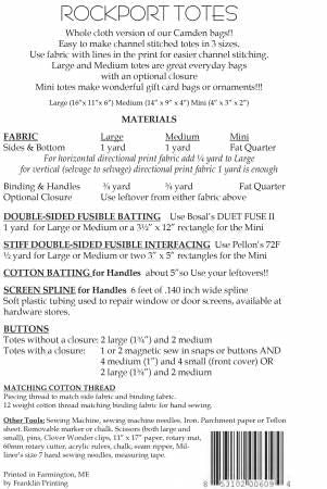 Whole cloth, channel stitched version of our Camden Bags in 3 sizes 16” wide x 11” tall x 6”deep or 14” wide x 9” tall x 4” Mini is 4” x 3” great for gift cards