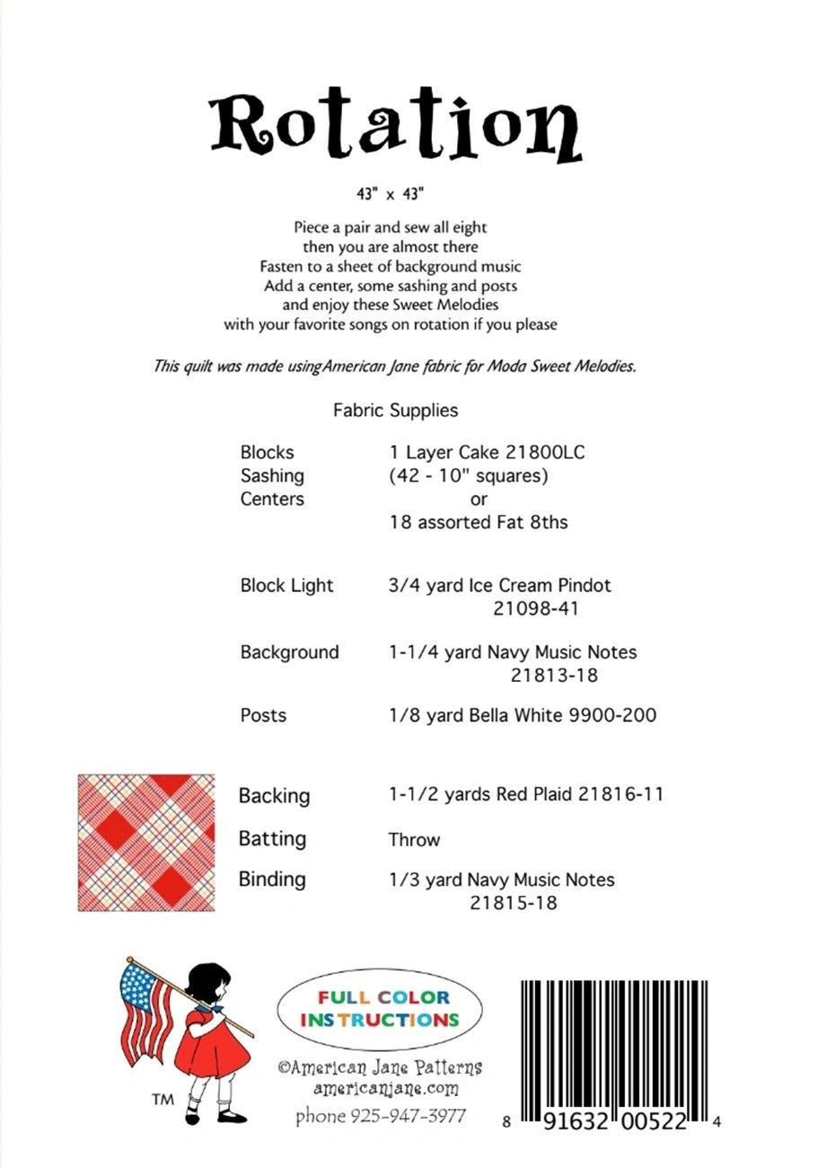 43" x 43" Piece a pair and sew all eight then you are almost there. Fasten to a sheet of background music. Add a center, some sashing and posts and enjoy these Sweet Melodies with your favorite songs on rotation if you please. Printed Paper Pattern Finished Size: 43in x 43in Final Product: Quilt Paper Templates Included Technique Used: Applique Skill Level: Confident Beginner