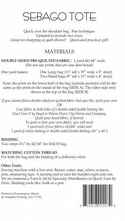 Large over the shoulder bag with four outside pockets. Quick to make with pre-quilted fabric. 12in High x 20in Wide