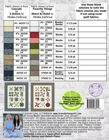 From Lavender Lime Quilting In Quilting - General 12 Fun and Fast simple blocks make this beautiful sampler quilt. Cover quilts use Favorite Things by Sherri and Chelsi and another color way featured is Cascade by 3 Sisters. Both lines are by Moda Fabrics. Softcover