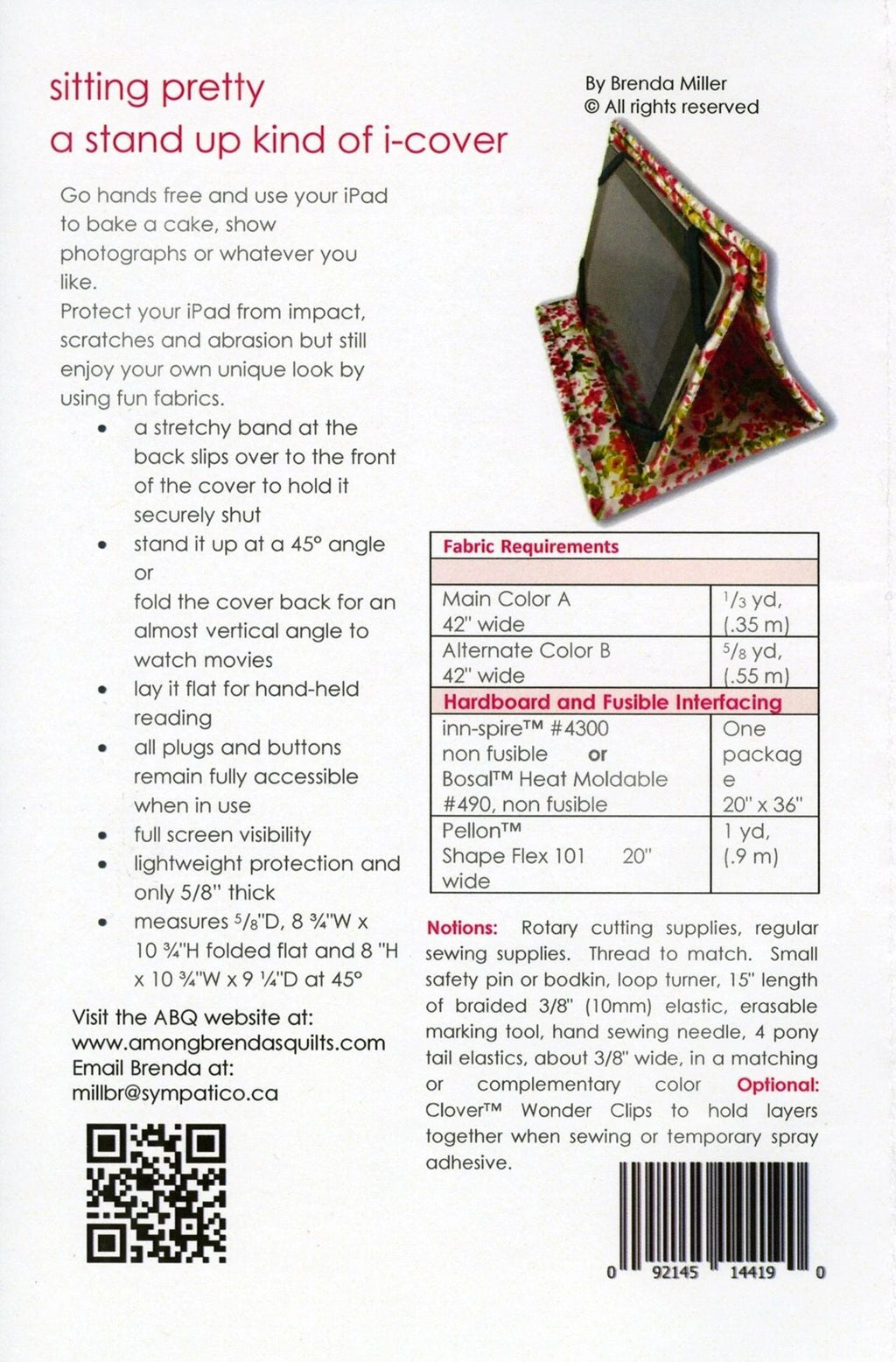 From Among Brenda's Quilts & Bags By Miller, Brenda In Bags, Purses, Totes & Electronic Covers Go hands free with this versatile i-Pad cover. Stand it up at 45° to read recipes, fold it into vertical mode to watch a movie or lay it flat to read your favorite novel. Sitting Pretty has full screen visibility and access to all ports and buttons. Protect your iPad from impact, scratches and abrasion but still enjoy your own unique look by using fun fabrics. After all, you're not a guy in a suit, so why would you accessorize like one? The Sitting Pretty cover is lightweight yet firm and measures a mere 5/8" deep. Measures 8 3/4" W x 10 3/4"L x 5/8" D folded and 8"H x 10 3/4"W x 9 1/4"D when in the 45 degree standing position.