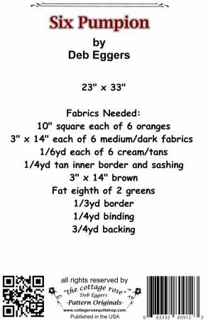 From Cottage Rose By Eggers, Deb In Wall Hanging This is a scrappy pieced wallhanging for your fall decor. Great way to use up scraps. It measures 23" x 33" Small amount of applique for the vines and leaves Printed Paper Pattern Finished Size: 23in x 33in Final Product: Wall Hanging Paper Templates Included Technique Used: Applique / Standard Machine Sewing Skill Level: Confident Beginner