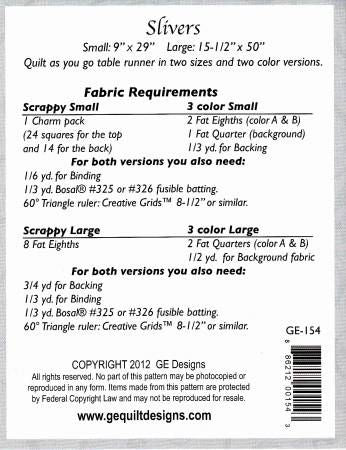 From G. E. Designs By Erla, Gudrun In Placemats, Table Runners & Toppers Two Sizes 15-1/2in x 50in and 9in x 29in and Two color Options. Uses a 60 degree triangle ruler. Creative Grids CGRT60.